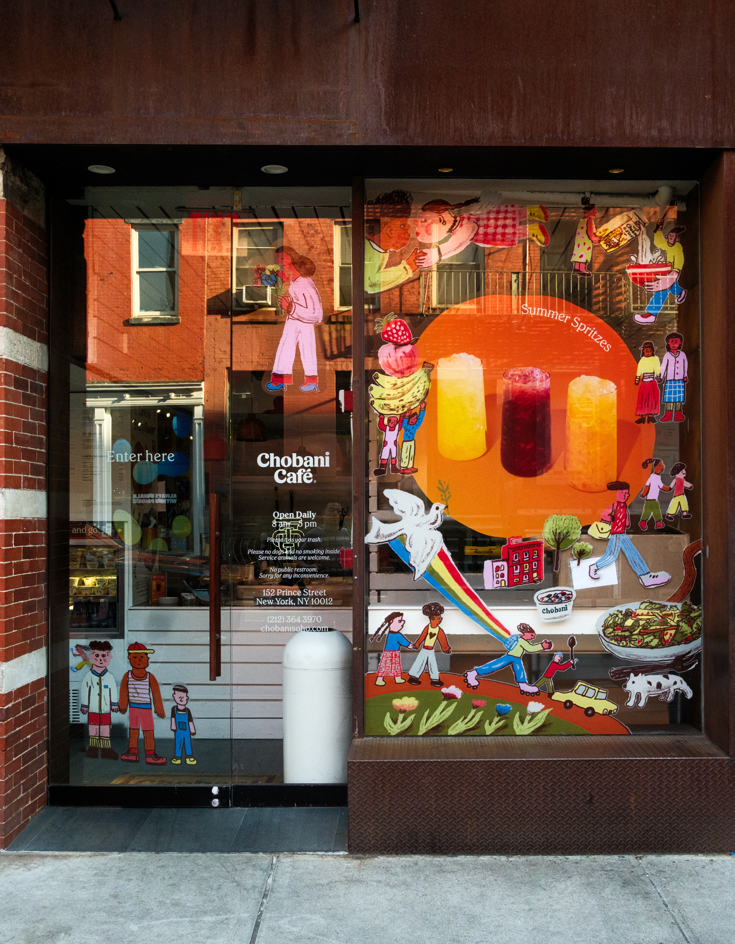 I was invited by Chobani to decorate their café in SoHo during Pride Month. Assets includes employee t-shirts, pins, window vinyls, banner, and indoor wall stickers.