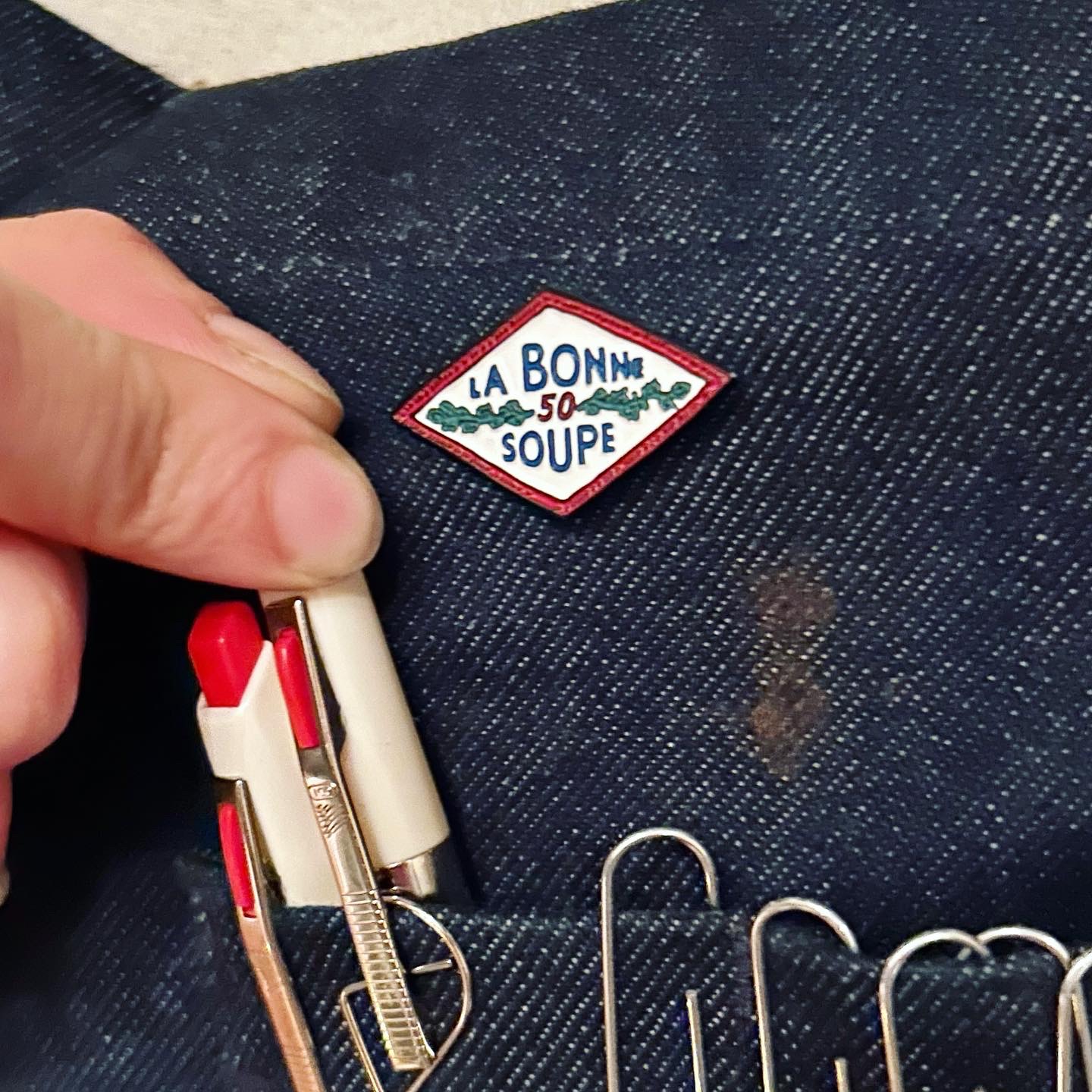 I worked on a series of assets for La Bonne Soupe in Manhattan for the rebranding of their 50th anniversary. Assets include lapel pins, t-shirt design, and menu spot illustrations.