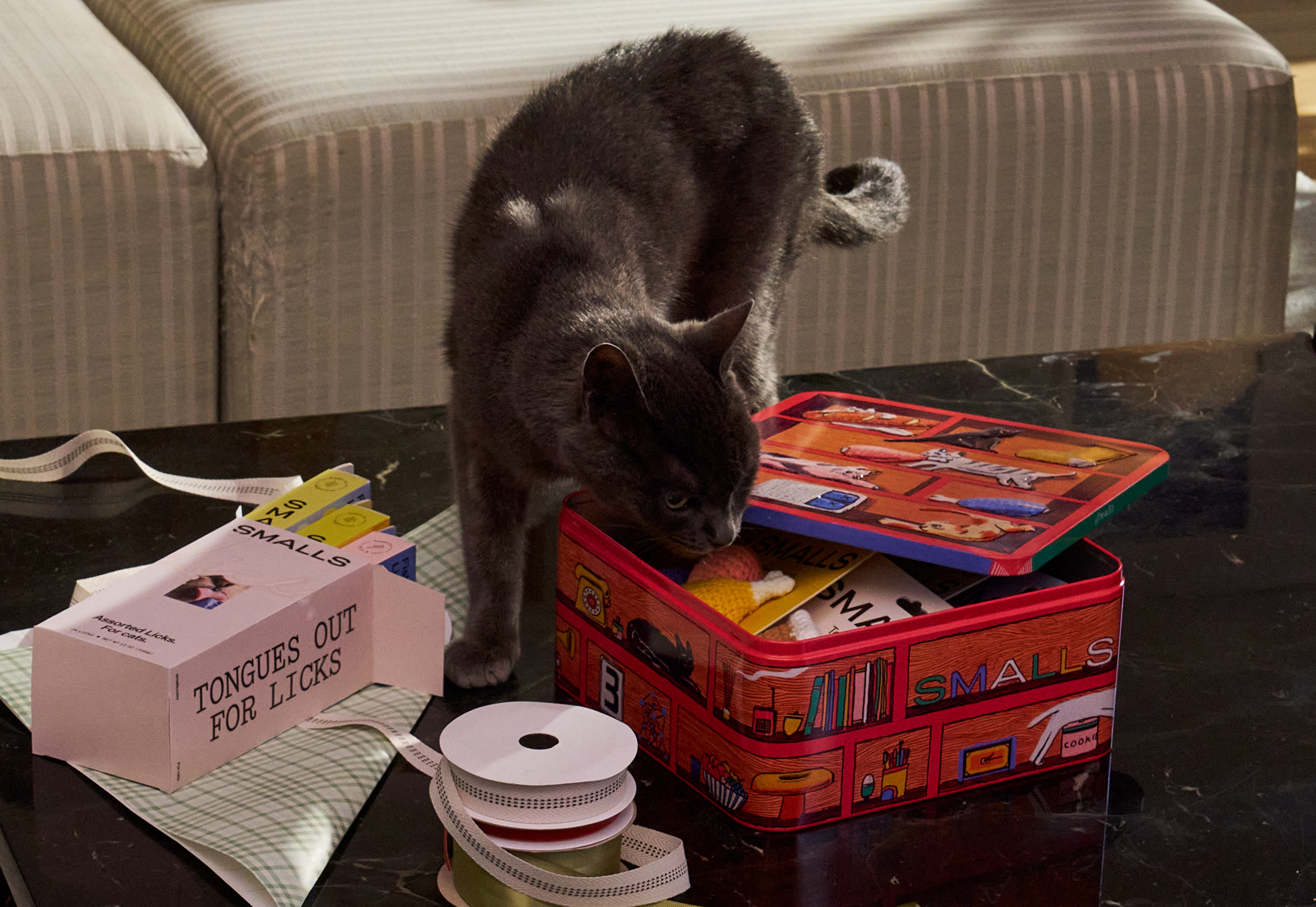 I was commissioned by Smalls, a cat food and toy company, to design a keepsake holiday tin for their catnip-filled crochet toys. The illustration is featured with a 180 degrees wraparound with embossment featured on the lid.